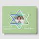Stylish Bar / Bat Mitzvah celebration guest sign in book done in spring green, with a colourful Star of David photo frame. Add your child's photograph and personalise the white text to read what you want.