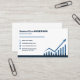 A business card in blue tones with an illustration of a bar chart. Contact information is decorated with icons. Perfect for activities such as business consultant, accountant, tax services, investment manager, analyst, etc.