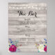 Bar Grey Wood Pink Floral Sign Wedding Reception
