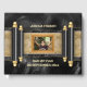 A beautiful vibrant red and black faux marble infused background has a black and faux gold scroll on it with a text template for your personalised wording and a photo inlay for your custom photograph. This design is ideal for your son celebrating a bar mitzvah or for new business launches; corporate events or any business that would like to keep a record of guests attending their show or opening.