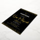 Be proud, rejoice and showcase this milestone of your favorite Bar Mitzvah! Send out this stunning, modern, sophisticated, personalized Hebrew name invitation for an event to remember. Graphic faux gold foil calligraphy script, Star of David, and confetti, overlay a rich, dramatic, black background. A faux gold Star of David overlays a faux metallic gold ombre background on the back. Personalize the custom text with your Bar Mitzvah’s name, Hebrew name, date, and venue information. Guaranteed to add stylish fun to his special occasion!