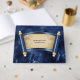 A beautiful vibrant navy blue and black faux marble infused background has a blue and faux gold scroll on it with a text template for your personalised wording. This design is ideal for your son celebrating a bar mitzvah or for new business launches; corporate events or any business that would like to keep a record of guests attending their show or opening.