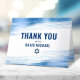 Make sure your favourite Bar Mitzvah shows his appreciation to all who supported his milestone event! Send out this cool, unique, modern, personalised thank you card. Metallic light blue foil brush strokes, along with bold, navy blue typography and Star of David, overlay a simple, white background. Your custom message, a navy blue Star of David, and light blue metallic brush strokes overlay white on the inside. Personalise the custom text with your Bar Mitzvah’s name and thank you message. Guaranteed to add a classy touch to his correspondence!