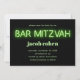 Bar Mitzvah Bright Green Neon Lights Save The Date Invitation