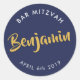 BAR MITZVAH favour modern navy blue faux gold Classic Round Sticker