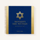 Elegant modern blue and gold classic affordable and casual personalised bar mitzvah guest book notebook with custom name, date and Star of David. Gold is an authentic-looking faux gold texture effect, NOT real gold foil.