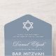 Bar Mitzvah Modern Dusty Blue Simple White Script All In One Invitation