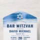 Be proud, rejoice and showcase this milestone of your favourite Bar Mitzvah! Send out this cool, unique, modern, custom all-in-one invitation for an event to remember. Metallic light blue foil brush strokes, along with bold, navy blue typography and Star of David, overlay a simple, white background. This all-in-one product is an unique combination of a custom invitation, including an evening venue, with an easy to tear off perforated RSVP postcard. Personalise the custom text with your Bar Mitzvah’s name, date, and venue information. Guaranteed to add stylish fun to his special occasion!