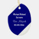 A classy, modern and eye-catching hanging ornament has a cobalt blue and white background which has the Star of David in a silver grey at the top. There is a two photo template for your personal images and the text templates on the back may be changed to reflect any wording of your choice. CUSTOMIZE IT - Change the photograph to personalise it. IDEAL AS - A keepsake to hang on a wall or door to commemorate this special occasion.
