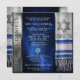 Customise this gold and green Bar Mitzvah invitation with a prayer shawl in blue and Star of David.