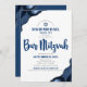 Bar Mitzvah Simple Modern Navy Blue Agate Script Invitation