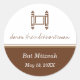 A graphic chocolate brown Torah highlights this Bar Mitzvah sticker. The Bar Mitzvah boy's full name is written below in a casual script with your other text including the event date offset by a brown panel. Available in alternate colours with matching products and with options for the Bat Mitzvah.