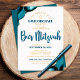 Be proud, rejoice and showcase this milestone of your favourite Bar Mitzvah! Send out this cool, unique, modern, personalised, Hebrew name real gold foil invitation for an event to remember. Dark teal blue script typography, real gold foil sans serif typography, and a real foil gold Star of David overlay a simple, clean white background with turquoise blue agate accented with real gold foil gold veins. Personalise the custom text with your Bar Mitzvah’s name, Hebrew name, date, and venue information. Guaranteed to add stylish fun to his special occasion!