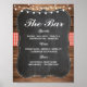 Bar Sign Wedding Reception Rustic Chalk Red Check