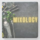 Modern design features background photo of bartender tools on chalkboard with Mixology neon text