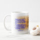This mug carries a beautiful depiction of the word "Barach" in paleo-Hebrew script - the script Baruch & Jeremiah would have used.  Accompanying it is a transliteration & translation.  All this is on a background of a Dead Sea Scroll which uses paleo-Hebrew script for the Name of God, YHWH.  "Barach" is the Hebrew for Bless.  There is also an excellent explanation of this word on the reverse of the mug.