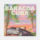 Baracoa Cuba auto travel poster print, a vintage black cuban car on a cuban beach during a beautiful sunset.