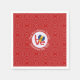 Personalised paper cocktail napkins with the Bajan or Barbadian LOVE FLAG. The word LOVE, using a heart shaped flag as the O, is featured in red letters inside a white, fractal circle of squiggly squares. The circle sits on a red, fractal background, also, of squiggly squares. Great for your guests at your next occasion or party to celebrate Barbados. Can be customised for any occasion.