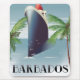 Barbados Cruise travel poster with a ocean liner and palm trees.