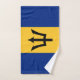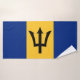 The Barbados flag is a vertical tricolour with in the centre an emblem. The used colours in the flag are blue, yellow, black. The proportion of the Barbados flag is 2:3. The Flag of Barbados was adopted in 1966.
