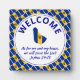 BARBADOS FLAG Christian Welcome plaque for men and women who love Barbados. This WELCOME PLAQUE would make a great addition to  your hallway, reception or living room decor. The design shows the flag of BARBADOS in a tiled pattern. At the centre, there is a small map outline of the country with curved text that says WELCOME.  This text is customisable, so you can change to your own greeting in your own language. At the bottom there is a Scripture verse from Joshua 24:15 - "As for me and my house, we will serve the LORD."  This text is also customisable, so you can replace with your own favourite Bible verse, motto or inspirational message. This WELCOME PLAQUE would make a wonderful gift for Newlyweds, New Home, New Christians, for Birthdays, Christmas, New Year, and throughout the year. This would look good in private homes and public places, such as restaurants, wine bars, cultural centres, embassies, schools, churches, etc - anywhere with a BARBADIAN-themed decor or influence. Matching items can be found in the BARBADOS Collection, so you can create some awesome gift sets.