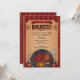 A stylish summer-theme invitation featuring a grill with meat and utensils framed against a handsome burnt-orange, plaid background. The words "barbecue party" are pre-printed. You can substitute the word "summer" to customise the invitation to the celebration you are hosting.