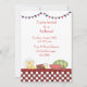 Barbecue or picnic invitation with red and white chequered border, picnic food and bunting flags. Perfect for summer parties or family reunions. Easy to customise and comes complete with envelopes and your choice of paper.