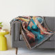 A quality printed throw has its advantages. This is a much finer weave throw than its loopier cousins, and though lighter, it is worth the investment for custom room accessorizing. The back is much prettier than the typical brown, and the fringe on the long sides very vivid, the selvage nicely done. Before photographing, I washed the throw in cold water, delicate, with a thicker woven throw the same size. On tumble dry low, this throw was dry in half the time as the other. This is a very practical quality if you use throws for furniture covers or to wrap up in frequently. The sleekness of the fabric makes it a great layer for accenting or protecting without the feeling of sitting on too much stuff. Perfect for napping or when you feel a light chill coming on. The color printing is beautiful and on this fabric, matched the design and color of my Photoshop image. This is an advantage for blending room fabrics and colors. The fringe on the short sides prints the colors from the design image and therefore varies from the side fringe. I streaked a white fractal line through the plaid pattern to give the illusion of weaving. This printed as crisp as an illusory thread, and put some white in the short side fringe, showing another advantage of print vs loomed- for artistic purposes, line lines, detail, and color integrity can be planned and preserved. My loomed throws have color limitations and more of a needlepoint texture. Print throws reproduce an exact image. The throw felt a little stiff straight out of the package, but this went away in the first delicate wash. Of course I searched the wash water for ink or bleeding and there was none.