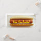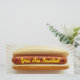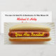 A skinny invitation featuring a photo of a plain hot dog in a bun resting on a white paper plate. Yellow text over frank (mustard) reads "You Are Invited." Personalise the black and red text on the opposite side with your name and details of your event.