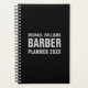 Black and grey modern business planner, bold text, eye-catching, remarkable, masculine. Great for free-lance barbers starting their career.