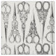 Barber cloth. Vintage scissors. Black white