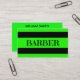 This trendy neon green striped business card is perfect for any barber, they are sure to get noticed and stand out to anyone looking for a barber.