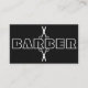Promote your barbershop with this business card featuring trendy white and black modern bold geometric typography script with scissors. +++++++++ Easy to personalise on the backside with your name, title and contact details. ++++++++ Suitable for men salon, self employed barbers, professional barber stylists.