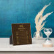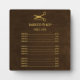 Luxury exclusive pricelist template plaque for a barber hairstylist shop with faux gold script on a dark brown leather looking background. Please note that the leather texture is PRINTED.
