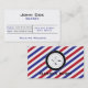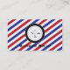 Barber shop Business card with moustache, scissors, and comb badge logo. Back of card has traditional barber striped background and logo is fully replaceable with one of your choice. Card and graphics are fully customisable. Perfect for a barber, barbershop, or stylist.