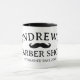 Barber shop coffee mug with pole sign and moustache. Classic red and blue barber shop pole drawing for men's hair salon. Stylish company cup for hair stylist. Make your own trendy barbershop mug for hot drinks.