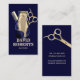 Barber Shop Hairdresser Navy Blue Gold Barbershop Business Card