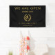 Men barber hairstyle salon banner sign advertising signage in faux gold and black with an elegant typography script. ++++++++++++ Easy to personalise with your main message (we are open), your business name, logo, phone number for appointments and website.