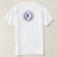 Simple template employee name and title navy blue scissors and laurel logo branded t-shirt for a barber hairstylist (if you don't need the logo on the back you can delete it after selecting customise it option)