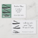 A double sided straight razor design business card for barber shops and male grooming.