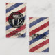Barbershop Business card with beard , tuxedo, skinny tie graphic. Card has a grunge texture to it and traditional barber background colours. Perfect for a barber, barbershop, barber shop, or stylist.