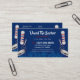 This is a CUSTOMIZABLE barbershop business card design. The design is represented by barbershop colours of blue and red. All artwork was created and illustrated by Dale Arthur of whizcreations.net.