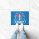Create your own custom old fashioned barbershop doormat for your man cave, door entrance or barbershop. Features scissors and razor stylist tools. Retro style barbershop pole in red, white and blue colours. Perfect for a barber or barbershop quartet singer.