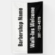 A banner lets everyone know your barbershop is open and welcomes walk-ins. The white text at the bottom says 'Walk-Ins Welcome'. The white text is on a black stripe. A white stripe at the top has black display text for the shop's name. White display text is also available for the barbershop's phone number.