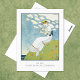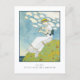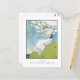 A postcard with the art deco illustration Un Peu Petite Robe de Campagne by George Barbier (1882-1932) A woman on a hillside in a white country dress holding a daisy. A digitally enhanced image from the Gazette du Bon Tonne a French fashion magazine.