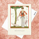 A postcard with the fashion illustration from 1913, Creation Paquin by George Barbier (1882-1932). A woman with an umbrella under a tree in a white pleated dress and orange jacket. A design from the French fashion house of Paquin (Maison de Couture). Jeanne Paquin was a dressmaker and fashion designer. Isidore Paquin ran the business.