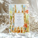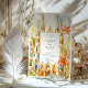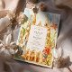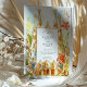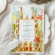 Celebrate your special day with this stunning wedding invitation suite, capturing the unique architectural wonders of Barcelona, designed by Antoni Gaudí. The front of the invitation features a vibrant watercolor illustration of the iconic Sagrada Família, its famous spires reaching towards a soft, colourful sky, framed by joyful red/orange and yellow stylised flowers and whimsical green foliage. The artistic rendering brings a lively and celebratory feel to this world-renowned landmark.