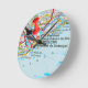 The clock did not take as long to arrive as I thought it might and was extremely well packaged. I didn't do the measurements so I didn't realize it is a little smaller than the average clock but that does not matter (just make sure you check if that's important to you).It is really nifty! It seems very solid and well made not flimsy at all. It has been going well and has kept good time in its few weeks on my wall. Nice product. Gets noticed too! Nicer in real life than the picture but true to the picture