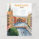 barcelona spain Travel Art Vintage Postcard