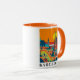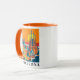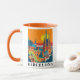 This vibrant retro mug of Barcelona, Spain. Inspired by 1960s European travel posters, the artwork uses clean lines and bold shapes to create a nostalgic vibe. A perfect gift or keepsake for lovers of architecture, design, and Spanish culture.